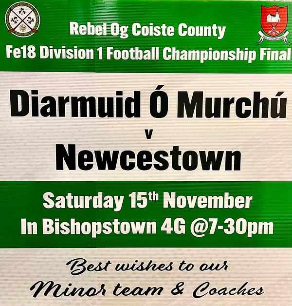 Massive game for Diarmuid’s minor footballers. Please come out and support our lads in this huge game for these young men