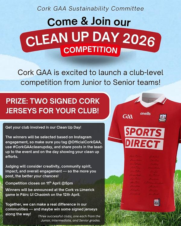 Cork GAA is delighted to announce that this year’s Community Clean Up Day will take place on Saturday, April 11th 2026.